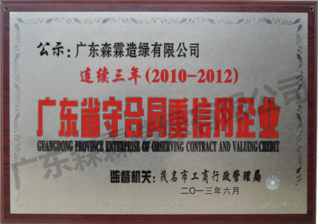 • 一连三年(2010-2012)广东省守条约重信用企业