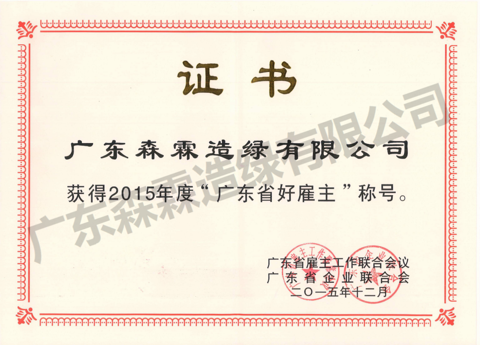 • 2015年度广东省好雇主证书