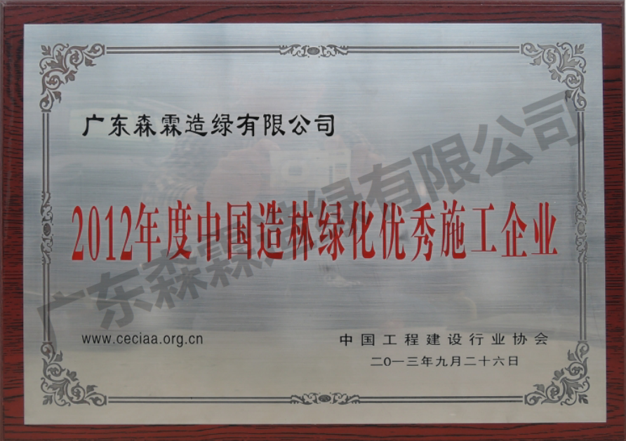 • 2012年度中国造林绿化优异施工企业