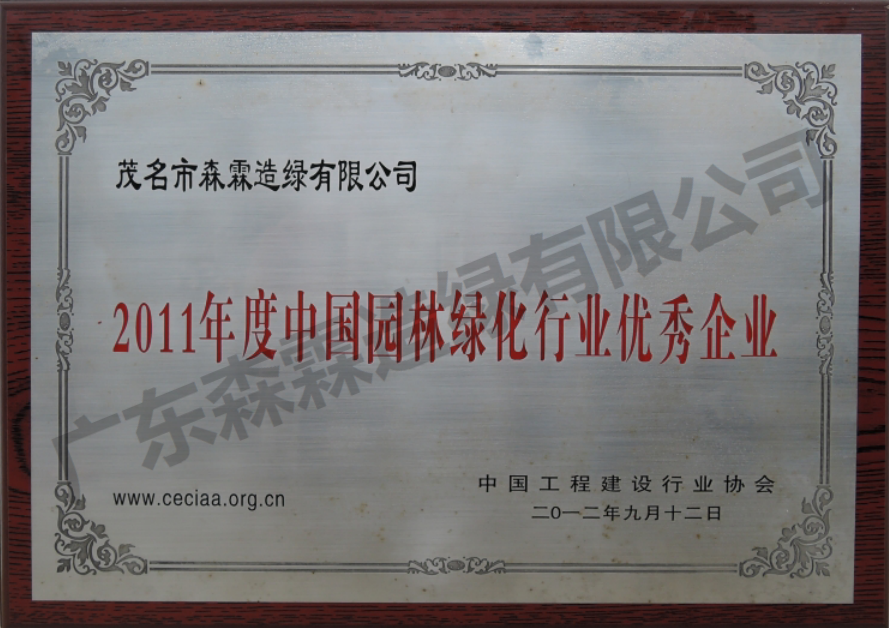 • 2011年度中国园林绿化行业优异企业